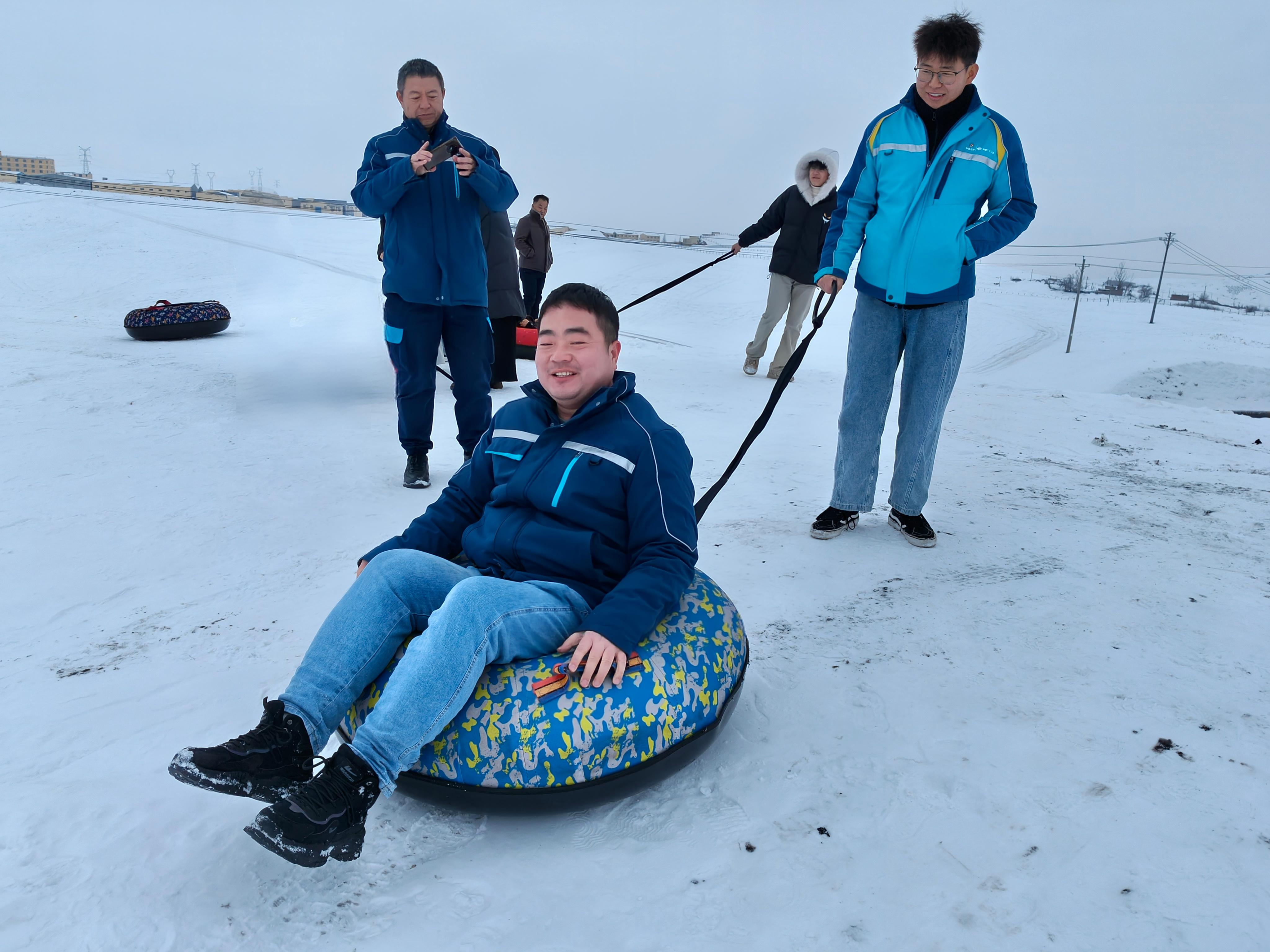 活動現(xiàn)場氣氛熱烈,職工們活力滿滿。大家雙手抓緊滑雪圈拉繩,發(fā)力向前滑行,雪圈在雪地上劃出一道道痕跡。眾人在滑行過程中互相配合,彼此照應(yīng),共同享受滑雪帶來的樂趣,現(xiàn)場不時傳來陣陣歡聲笑語。