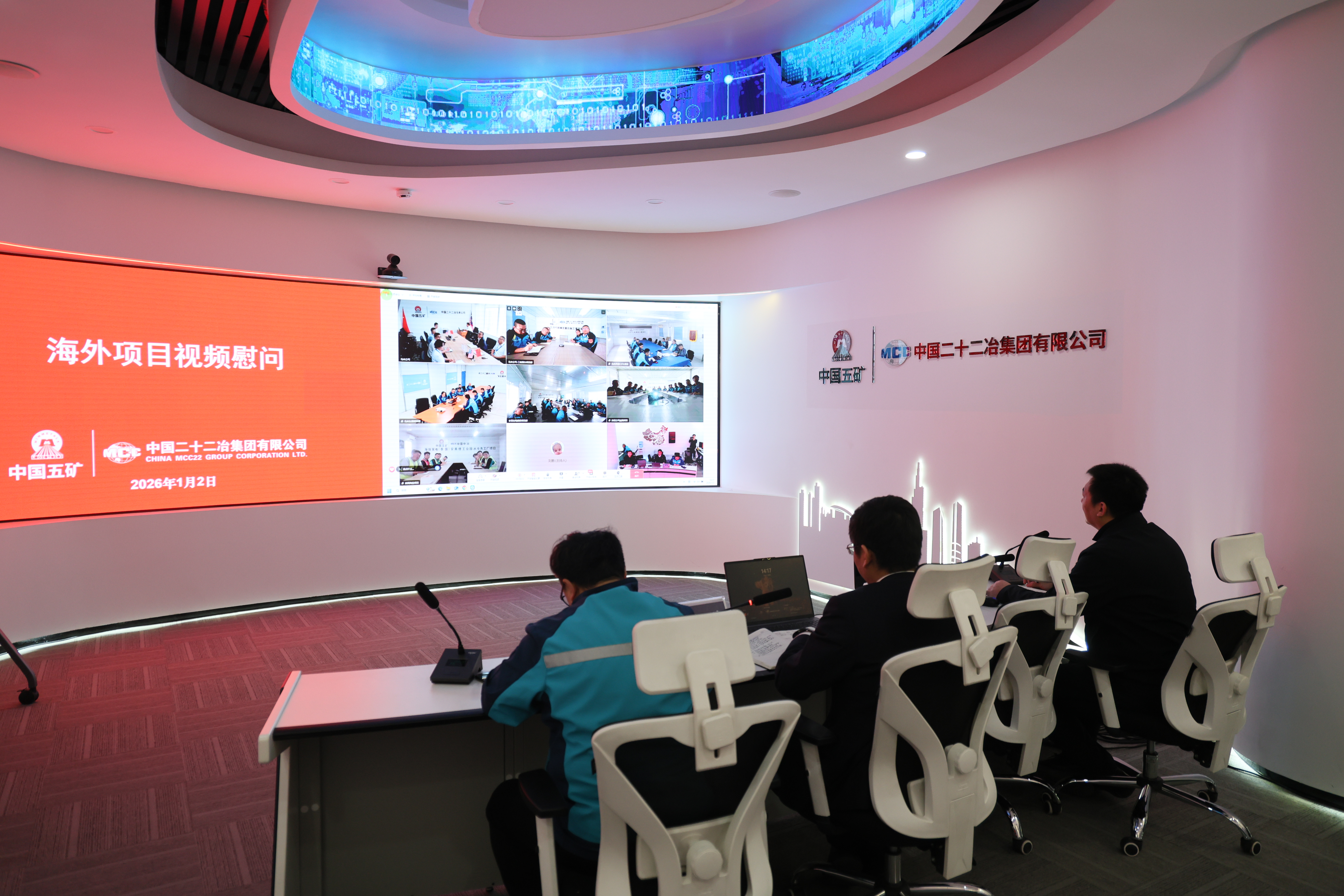 1月2日,中國二十二冶紀委書記田和平代表公司黨委通過視頻連線的方式慰問了晨曦項目、三嘉蛋白項目、東鋼料場項目、泰國海信項目、CZTL項目、華通安哥拉項目以及阿及光伏項目,向堅守在海外一線的干部職工送上新年的祝福。