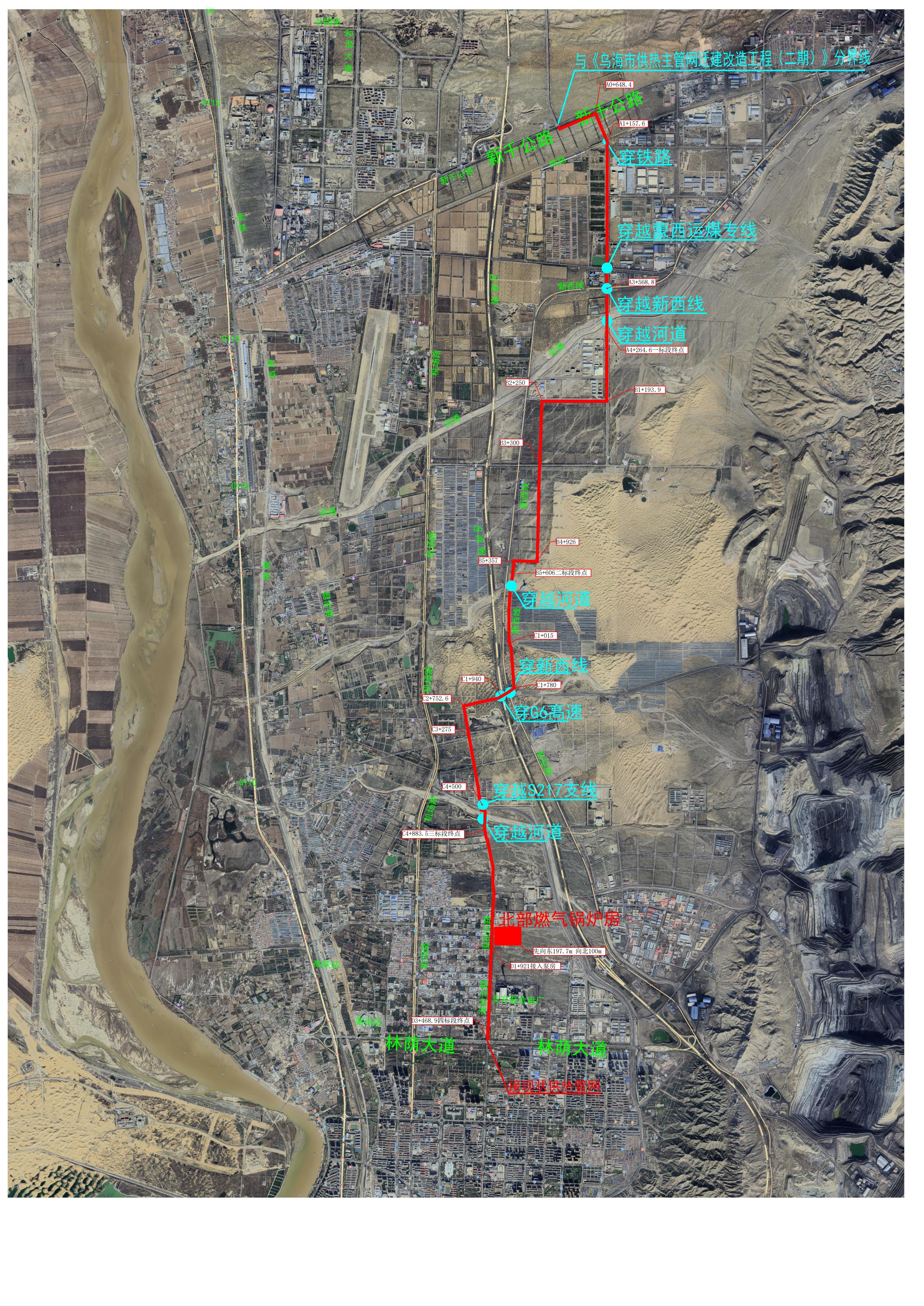 烏海市供熱主管網遷建改造項目四標段位于烏海市海勃灣區。工程內容主要為管道直徑DN1400,管槽長約3.77km。包含一座加壓泵站的升級與改造,以及路面的破除與恢復。